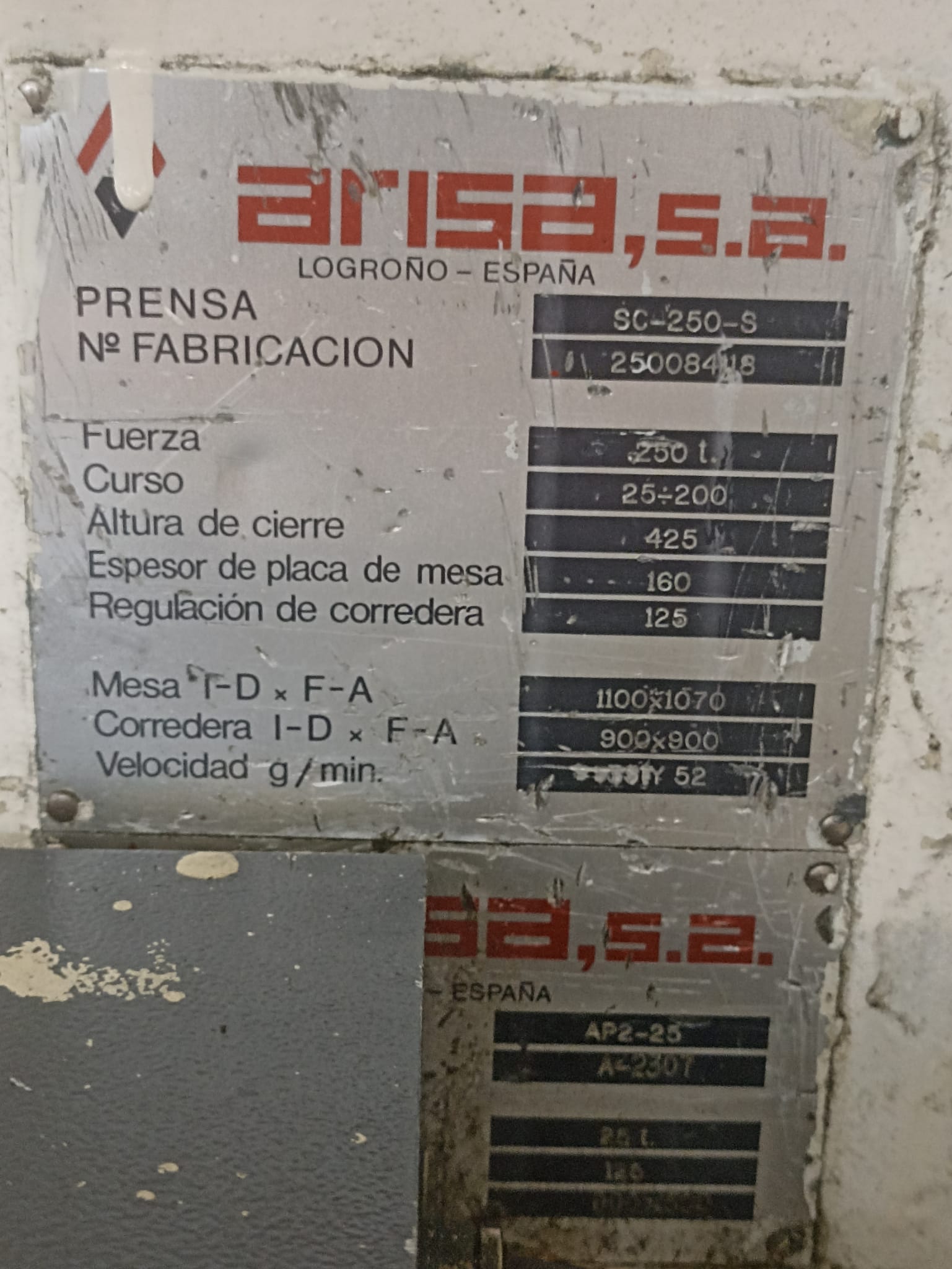 Prensa mecánica Arisa 250 toneladas